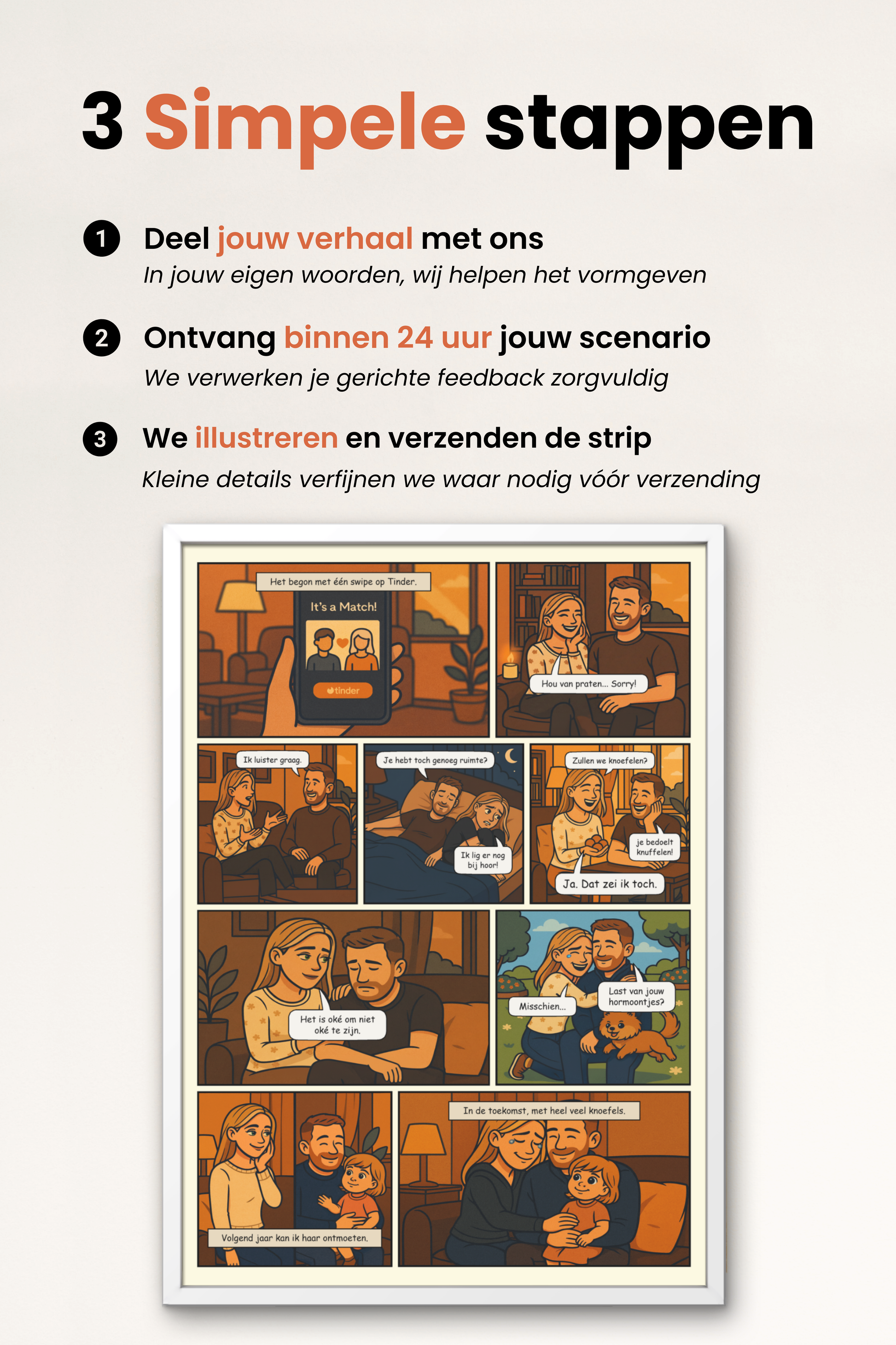 OurComic transforms your personal story into a unique, hand-illustrated comic. Each piece starts with your words and characters — making it the most personal and emotional gift you can give.