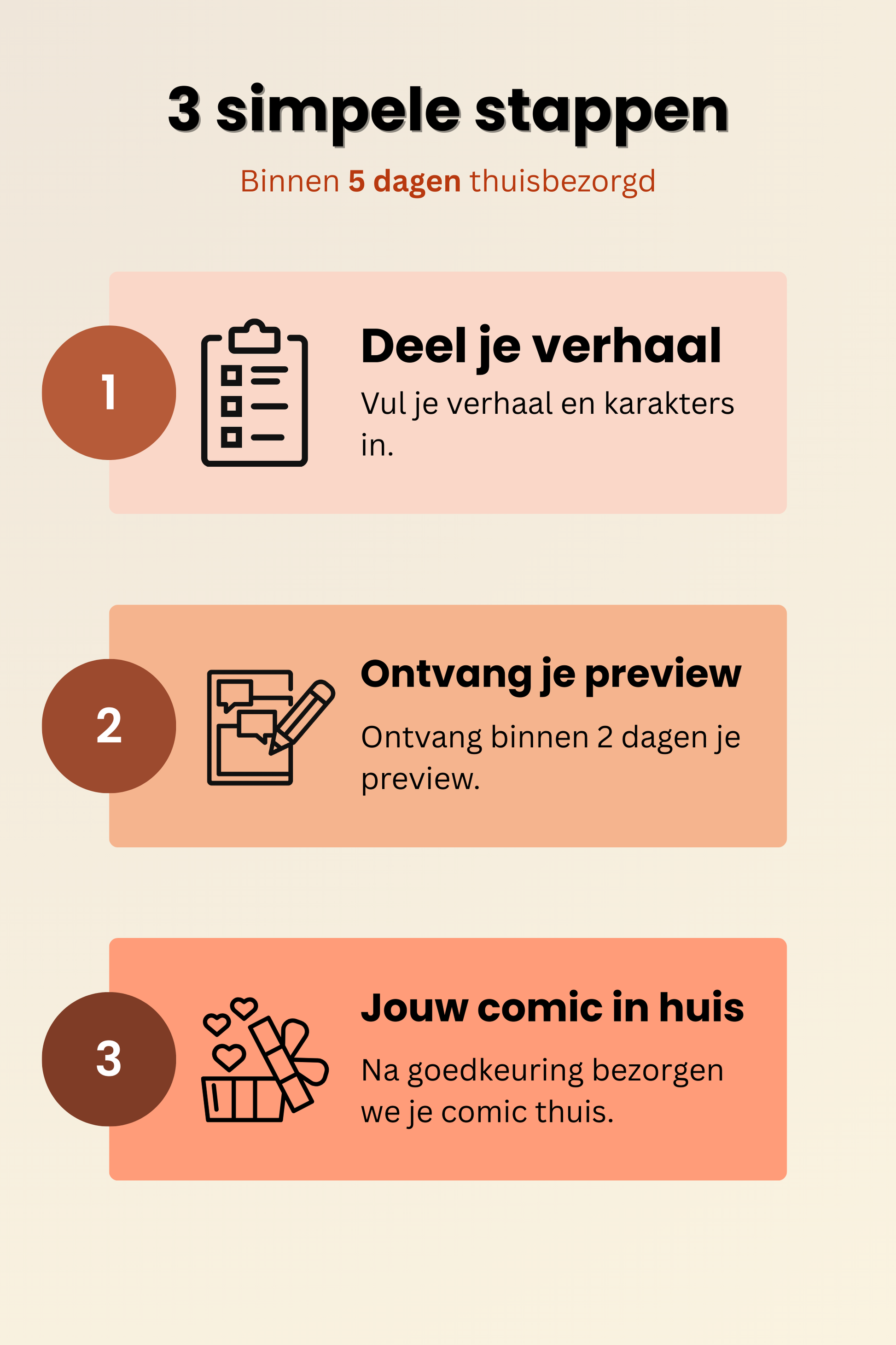 Je gepersonaliseerde comic-voorbeeld staat binnen 48u in je mailbox.